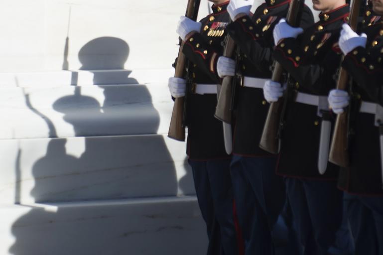 | Keywords: Veterans Day at Arlington National Cemetery 141111-D-DT527-098.jpg en The shadows of the Marine Corps Honor Guard are cast on the Tomb of the Unknown Soldier at Arlington National Cemetery in Virginia during a Veterans Day wreath laying ceremony Nov 11 2014 Photo by Master Sgt Adrian Cadiz Released Unit Defense Imagery Management Operations Center DVIDS Tags Department of Defense; DoD; Secretary of Defense; DIMOC; SecDef; Chuck Hagel; DVIDS Bulk Import 2014-11-11 Master Sgt Adrian Cadiz https //www dvidshub net/image/1665989/veterans-day-arlington-national-cemetery 141111-D-DT527-098 2014-11-20 05 14 ARLINGTON NATIONAL CEMETERY VA US PD-USGov Chuck Hagel Arlington National Cemetery Veterans Day 2014 Images from DoD uploaded by Fæ |
