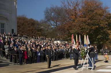 | Keywords: Veterans Day at Arlington National Cemetery 141111-D-DT527-350.jpg en Vice President Joe Biden places a wreath at the Tomb of the Unknown Soldier during a Veterans Day wreath laying ceremony at Arlington National Cemetery in Virginia Nov 11 2014 Photo by Master Sgt Adrian Cadiz Released Unit Defense Imagery Management Operations Center DVIDS Tags Department of Defense; DoD; Secretary of Defense; DIMOC; SecDef; Chuck Hagel; DVIDS Bulk Import 2014-11-11 Master Sgt Adrian Cadiz https //www dvidshub net/image/1666091/veterans-day-arlington-national-cemetery 141111-D-DT527-350 2014-11-20 02 50 ARLINGTON NATIONAL CEMETERY VA US PD-USGov Joe Biden Chuck Hagel Arlington National Cemetery Veterans Day 2014 Images from DoD uploaded by Fæ |
