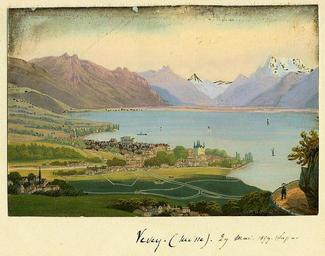 Keywords: Vevey.jpg Vevey peinture sur mica own by Cmlr 1859 painter PD-art-100 Château de l'Aile Historical images of Vevey 1859 in Switzerland Lake Geneva in art