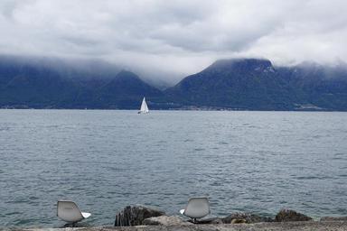 Keywords: vevey switzerland lake geneva chair lake water mountains fog bank sailing boat landscape show holidays sail holiday tourism