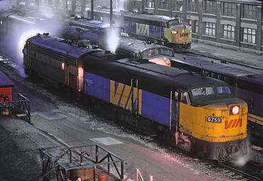 <b>A Roger Puta Photograph</b> VIA 6759, March 1981 in Toronto, ON (24803781330).jpg en 6759 was one of two FPA-2's 6758 from shot 2 was the other that had their 244 engines replaced with 251 engines by CNR as an experiment After a period of testing CN decided that the 251 powered FA was a winner and that led to the FPA-4/FPB-4 models from MLW built in 1959 <br> <b>A Roger Puta Photograph</b> 2016-02-17 19 23 12 https //www flickr com/people/129679309 N05 railfan 44 https //www flickr com/photos/129679309 N05/24803781330/ User Fæ/Flickr API Puta's Canadian Roads other than CP and CN Night Images Night Lights Via Rail Canada ALCO-MLW Locomotives Railroads At Night Railroad Graphics Heralds and Signs Locomotive Roster and Detail shots Your Favorite Railroad Shot Trains and Dramatic Light Rail shots at night Mel Finzer RogerPuta Photographs by Roger Puta Photos uploaded from Flickr by Fæ using a script 1981 in rail transport in Canada 1981 in Toronto Via Rail Rolling stock of Via Rail |