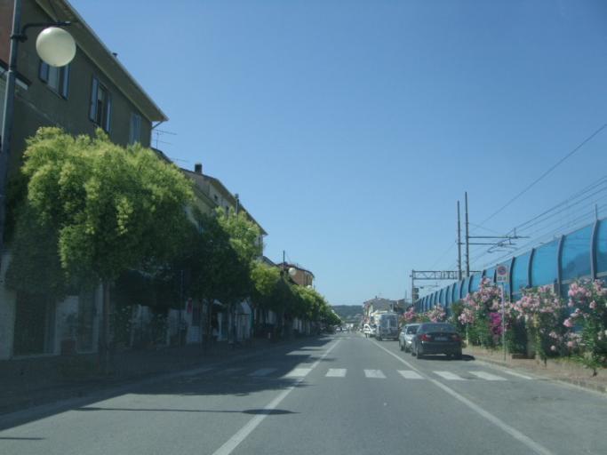 | Keywords: VIA AURELIA A ROSIGNANO SOLVAY.JPG it Uno scorcio della Via Aurelia a Rosignano Solvay insieme alla traversa di via Berlinguer rappresentano il centro commerciale del paese La Ferrovia scorre a fianco della Via Aurelia ben visibili le barriere antirumore di colore azzurro con adiacente verde pubblico mentre alberi di arancio si susseguono sull'altro lato dove maggiore è la presenza di negozi e servizi Rosignano Solvay è territorialmente molto estesa ed è caratterizzata da alcune altre aree ben distinte dotate di tutti quei negozi e servizi necessari alla vita di una moderna cittadina I collegamenti percorribili in auto tra la parte lato mare ad ovest e la parte lato monte ad est di Rosignano Solvay sono garantiti dal cavalcavia e dal sottopasso di Via Forli' inaugurato lo scorso 29 Maggio 2009 in sostituzione del vecchio passaggio a livello A seguire i 9 rioni in cui è suddivisa Rosignano Solvay Monte alla Rena Crocetta Pescine Poggi Paoli/5 strade Serragrande Lillatro Villaggio Stazione e Paese Novo Da un mio scatto personale Miriano 12/06/2009 Rosignano Solvay Strada Statale 1 Via Aurelia Rosignano |