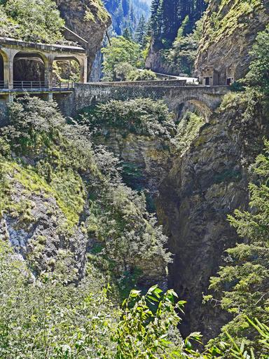 Keywords: via mala rhine gorge hinterrhein graubünden thusis switzerland gorge rock deep gallery alpine bridge stone bridge main alpine ridge