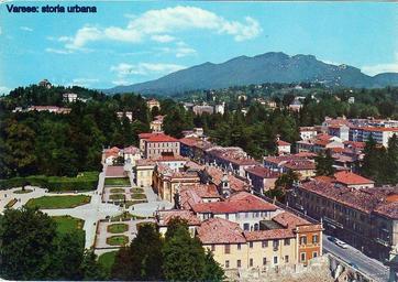 | Keywords: varese palazzo estense palazzoestense via luigi sacco vialuigisacco giardini pubblici giardinipubblici outdoor hill landscape mountainside Vista dall'alto di via Sacco e dei Giardini Pubblici. Dopo Palazzo Estense (1766-73), all'angolo con via Verdi, è visibile l'alto palazzo multipiano delle scuole medie costruito nel 1903 e abbattuto a fine anni '70. In basso a destra è in corso la demolizione di casa Sacco/Ghirlanda (arch. Francesco Peverelli, 1808) sostituita nel 1964 dal palazzo della Banca d'Italia (arch. Ignazio Gardella). Vista dall'alto di via Sacco e dei Giardini Pubblici. Dopo Palazzo Estense (1766-73), all'angolo con via Verdi, è visibile l'alto palazzo multipiano delle scuole medie costruito nel 1903 e abbattuto a fine anni '70. In basso a destra è in corso la demolizione di casa Sacco/Ghirlanda (arch. Francesco Peverelli, 1808) sostituita nel 1964 dal palazzo della Banca d'Italia (arch. Ignazio Gardella). |