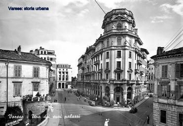 | Keywords: In centro palazzo De Micheli e di seguito, affacciato su via Verbano (ora Marcobi), il palazzo della Banca Commerciale Italiana, entrambe sono opere della fine degli anni '20 dell'ing. Edoardo Flumiani. Segue la stretta casa Crugnola (ing. Zafferri), chiude la sequenza palazzo Verga (ing. Mario Cantù). All'estrema destra uno scorcio di casa Sacco/Ghirlanda (arch. Francesco Peverelli, 1808) sostituita nel 1964 dal palazzo della Banca d'Italia (arch. Ignazio Gardella). varese viaverbano viawaltermarcobi |