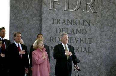| Keywords: Vice President Al Gore, First Lady Hillary Clinton, and President Bill Clinton at the 1997 dedication of the Franklin Delano Roosevelt Memorial in Washington, D.C. The vice president's wife, Tipper, LCCN2011634213.tif 1 transparency color ; 4 x 5 in or smaller Notes Title date and keywords provided by the photographer ; Digital image produced by Carol M Highsmith to represent her original film transparency; some details may differ between the film and the digital images ; Forms part of the Selects Series in the Carol M Highsmith Archive ; Gift and purchase; Carol M Highsmith; 2011; DLC/PP-2011 124 ; Credit line Photographs in the Carol M Highsmith Archive Library of Congress Prints and Photographs Division 1997 Creator Carol M Highsmith Library of Congress Catalog http //lccn loc gov/2011634213 Image download https //cdn loc gov/master/pnp/highsm/16000/16020a tif Original url http //hdl loc gov/loc pnp/highsm 16020 No known restrictions on publication LOC-image highsm 16020 PD-Highsmith Images uploaded by Fæ Photographs by Carol M Highsmith |