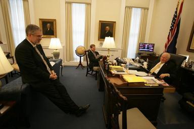 View Original:Vice_President_Cheney_Meets_with_David_Addington_and_John_McConnell_in_His_office.jpg (4992x3328)