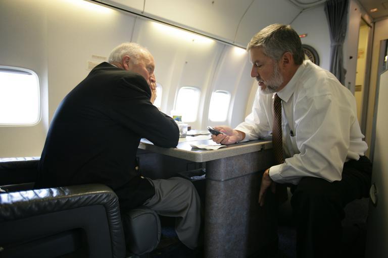 View Original:Vice_President_Cheney_Talks_with_David_Addington_Aboard_Air_Force_Two.jpg (4992x3328)