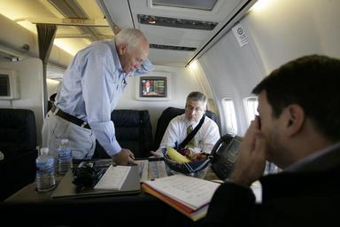 View Original:Vice_President_Cheney_Talks_with_David_Addington_Aboard_Air_Force_Two.jpg (4992x3328)