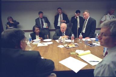 View Original:Vice_President_Cheney_with_Senior_Staff_in_the_President's_Emergency_Operations_Center_(PEOC).jpg (3072x2048)