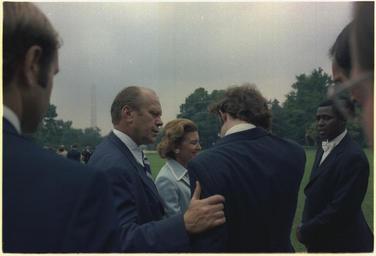 | Keywords: Vice President Ford consoling David Eisenhower as Nixon departs from the White House - NARA - 194598.tif Scope and content Pictured Gerald R Ford Betty Ford David Eisenhower Subject Last Day General notes 194598 Local identifier NLRN-WHPO-E3393C-30A General Services Administration National Archives and Records Service Office of Presidential Libraries Office of Presidential Papers 01/20/1969 - ca 12/1974 Most Recent <br /> President 1969-1974 Nixon White House Photo Office 1969 - 1974 Most Recent NARA-Author Atkins Oliver F 1916-1977 Photographer 8451334 <br /> Richard Nixon Library NLRN 18001 Yorba Linda Boulevard Yorba Linda CA 92886 1974-08-09 Record group Collection RN-WHPO White House Photo Office Collection Nixon Administration 01/20/1969 - 08/09/1974 Record group ARC 1179 Nixon White House Photographs compiled 01/20/1969 - 08/09/1974 documenting the period 08/08/1968 - 08/09/1974 Series ARC 194277 File unit File unit ARC Variant control numbers NAIL Control Number NLNP-WHPO-MPF-E3393C 30A yes Other versions NARA-cooperation PD-USGov Photographs by Ollie Atkins |