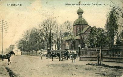 | Keywords: Viciebsk, Zadźvińnie-Połackaja. Віцебск, Задзьвіньне-Полацкая (1910).jpg Віцебск Viciebsk Задзьвіньне Zadźvińnie вуліца Полацкая vulica Połackaja Ца ква Сьвятога ікалая www molotok ru author < 1918 PD-old-100 Church of Saint Nicholas Bataljonnaja in Viciebsk History of Vitebsk Images from molotok ru |