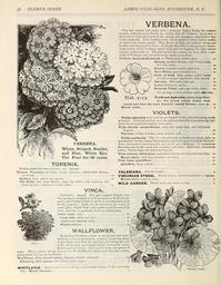 | Keywords: Vick's garden and floral guide (16375564888).jpg jS FLOWER SEEDS <br> JAMES VICKS SONS ROCHESTER N Y <br> VERBENA <br> VERBENA <br> White Striped Scarlet <br> and Blue White Eye <br> The Four for 30 cents <br> TORENIA <br> Trailing plants for vases baskets etc Annual <br> Torenia Fournieri for moist shady location; velvety-blue flowers <br> six inches 10 <br> Bailloni deep yellow and maroon 10 <br> The Bride new large flowers upper lip white; side segments and <br> lower hp pink ; bottom of corolla yellow 25 <br> VINCA <br> Periwinkle Annual The past summer Vincas have <br> been grown successfully as bedding plants in the Rochester <br> parks and if better known would be more extensively used <br> for this purpose Seeds can be started in the house or <br> under glass; bloom from early summer until destroyed by <br> frost ; and may be potted for the house before frost <br> Vinca rosea rose 10 <br> rosea alba white red eye 10 <br> rosea nova species white 10 <br> Mixed varieties 10 <br> WALLFLOWER <br> By growing Wallflower plants in the ground and trans- <br> planting to pots in the autumn or better by placing plants <br> VINCA in pots when taken from the seed bed and sinking the pots <br> to the rim in earth good plants will be secured for winter <br> flowering in the house Give a cool room and plenty of <br> water Where winters are not very severe the Wallflowers make most desirable plants <br> giving plenty of early spring flowers <br> Wallflower Fine mixed colors fragrant; double; perennial 15 <br> Flowering first season fine mixed colors single 5 <br> Very few annuals will make such a gorgeous display during the summer <br> months or furnish more flowers for cutting than the Verbena Start seed in <br> the house or under glass early in the spring and transplant after three or four <br> inches of growth Good healthy plants can be produced from seed as readily <br> as almost any tender annual They flower in July and continue strong and <br> healthy until destroyed by frost A strange fact that is not generally known <br> is that nearly all the Verbenas raised from seed are fragrant the light colored <br> varieties particularly so The past quarter of a century we have made a spe- <br> cialty of Verbenas and our stock to-day stands at the head <br> Verbena Auricula-flowered or White-eyed mixed colors xo <br> Striped excellent flowers with broad Carna- <br> tion-like stripes 10 <br> Scarlet brightest scarlet quite true 10 <br> Pure White quite true from seed 10 <br> Cloth of Gold iThe golden yellow leaves <br> present a unique appearance fine mixed 10 <br> Ccerulea Blue with white eye 10 <br> Lutea Primrose yellow 10 <br> Purplish Violet with large white center 10 <br> One package of each of above eight OO cents <br> dX S \ Z £ Verbena hybritla extra large flow- <br> ers fine mixed colors choice seed <br> saved only from the most beautiful named flowers ounce 2 10 <br> Mixed colors 5 <br> VIOLETS <br> Viola Odorata is the well-known English Violet a free flowering hardy <br> perennial Easily grown from seed though somewhat slow in germinating; suc- <br> ceeds best in a partially shaded moist place <br> Viola odorata semperflorens deep rich violet blue and deliciously <br> fragrant 10 <br> The Czar in blue or white sweet scented each 10 <br> Viola COrnuta This is a beautiful old border flower which since its <br> introduction into the summer flower-garden has been taken in hand by the hybri- <br> dizer and many lovely forms of it now enrich our collections It commences <br> flowering early in the season and continues until frost Habit and constitution <br> robust; flowers large and delicately fragrant <br> Viola cornuta Admiration magnificent flowers of a beautiful dark blue xo <br> Mixed colors dark blue lavender and white 10 <br> Viola lutea grandiflora 10 <br> splendens large yellow 10 <br> VALERIANA Fine for borders 5 <br> VIRGINIAN STOCK Hardy annual; fine for small beds or edgings <br> Mixed colors ounce 35 cents 5 <br> WILD GARDEN- Mixed seeds per ounce 20 cents 5 <br> VVHITLAVI A Annual with delicate foliage and drooping clusters of blue and white <br> bells Mixed varieties 5 <br> VIOLET CZAR 43864395 149533 78224 Page 38 Text http //www biodiversitylibrary org/page/43864395 1900 10 5962/bhl title 78224 Henry G Gilbert Nursery and Seed Trade Catalog Collection ; James Vick's Sons Rochester N Y Biodiversity Heritage Library Vick's garden and floral guide 1900 Garden Stories Catalogs Commerce Flowers Gardening James Vick's Sons Rochester N Y Rochester N Y Seeds Vegetables U S Department of Agriculture National Agricultural Library bhl page 43864395 dc identifier http //biodiversitylibrary org/page/43864395 James Vicks Sons bhlGardenStories Verbena Violets BHLinbloom james vick's sons rochester n y rochester n y u s department of agriculture national agricultural library james vicks sons bhlgardenstories bhlinbloom Information field Flickr posted date ISOdate 2015-02-17 CC-BY-2 0 BioDivLibrary https //flickr com/photos/61021753 N02/16375564888 2015-08-24 22 57 14 cc-by-2 0 PD-old-70-1923 Verbena Vick's garden and floral guide Photos uploaded from Flickr by Fæ using a script |