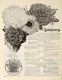 | Keywords: Vick's garden and floral guide (16561547981).jpg DI ANTHUS <br> i Heddewigii white <br> 2 Heddewigii Diadem <br> 3 Heddewigii Mourning Cloak <br> 4 Heddewigii The Bride <br> 26 <br> DIANTHUS LACINIATUS Double <br> The varieties of Dianthus known as Chinese Pinks and Japanese <br> Pinks are among the most brilliant of our garden flowers and are worthy <br> of particular care Tall sorts are from twelve to fifteen inches in <br> height ; those of the dwarf varieties are only a few inches high making good pot plants <br> Seeds can be sown under glass in the spring or in an open sheltered bed ; they are easily <br> transplanted and should be set from eight to twelve inches apart the dwarf varieties <br> about six inches Bloom the first summer and also the second if protected in the winter <br> Dianthus Double Chinensis or Indian Pink best varieties mixed ounce 40 cents 5 <br> DOUBLE IMPERIAL PINK <br> White and Red Striped 5 White 5 <br> White and Purple Striped 5 All Colors mixed 5 <br> Blood Red 5 Set of Four for 15 cents <br> HEDDEWIGII Single <br> A beautiful strain of Japan Pinks ; the flowers are large and exquisitely colored in pink rose purple <br> and maroon with occasional patterns of black and white; the petals are fringed <br> The Bride or Little Gem white with Crimson Belle brilliant dark red; very <br> purple center dwarf; a perfect little gem handsome 10 <br> Profuse bloomer 10 Eastern Queen an exquisite rose color 10 <br> All Colors mixed 5 <br> HEDDEWIGII Double <br> The rich color patterns are similar to the single varieties but the flowers are very double and <br> finely fringed <br> Mourning Cloak rich blackish crimson Diadem Pink one of the most marked of <br> tipped and fringed with snowy white the Heddewigii varieties; brilliant mark- <br> large and handsome 10 ings and dazzling colors ; mixed 10 <br> White large double flowers 10 All Colors mixed 5 <br> LACINIATUS <br> A fine class of fringed flowers both single and double and cf very choice colors <br> Salmon Queen single A very distinct Sanguineus blood red 10 <br> and perfectly new tint the most brilliant Single All Colors mixed 5 <br> almon color imaginable changing into a Double All Colors mixed 5 <br> rosy salmon 10 <br> Heddewigii and Laciniatus both double and single Mixed 5 cents <br> Set of Five Single Pinks the best in the World The Bride Crimson Belle Eastern Queen v <br> Salmon Queen Sanguineus 35 cents <br> HARDY PINKS <br> Plumosus Pheasant's Eye or June / ltij s I'ink New variety of Scotch <br> Pink sometimes called Grass Pink ; fine Pink producing an entirely new scries of <br> formassing Closely related to the Carna- colors of exquisite beauty enlivened by a <br> tion but smaller flowers and more hardy lar S e c ' e of velvety blood red Has a <br> Flowers beautiful and fragrant Perennial sweet clover-like perfume Single 20 <br> Plants are hardy until they become old It Cyclops J'iitk double 20 <br> is best to keep a few young plants coming SeiUjU'ffiorettM Florists' Perpetual <br> on Single variety mixed 5 p ink Very sweet scented double semi- <br> Plumosus Pheasant's Eye or June double and single flowers Great diversity <br> Pink double 10 of colors 90 <br> All of these varieties have large flowers brilliant colors and are handsomely marked The plants are <br> of easy culture blooming freely and for a long time with proper care 43864407 149533 78224 Page 26 Text http //www biodiversitylibrary org/page/43864407 1900 10 5962/bhl title 78224 Henry G Gilbert Nursery and Seed Trade Catalog Collection ; James Vick's Sons Rochester N Y NameFound Anthus NameConfirmed Anthus EOLID 76879 NameBankID 2473077 NameFound Carna colors NameFound Dianthus NameConfirmed Dianthus EOLID 11254753 NameBankID 2646562 NameFound Dianthus laciniatus NameConfirmed Dianthus laciniatus NameBankID 5867360 NameFound Laciniatus NameFound Plumosus NameFound Sanguineus Biodiversity Heritage Library Vick's garden and floral guide 1900 Garden Stories Catalogs Commerce Flowers Gardening James Vick's Sons Rochester N Y Rochester N Y Seeds Vegetables U S Department of Agriculture National Agricultural Library bhl page 43864407 dc identifier http //biodiversitylibrary org/page/43864407 James Vicks Sons bhlGardenStories Dianthus BHLinbloom james vick's sons rochester n y rochester n y u s department of agriculture national agricultural library james vicks sons bhlgardenstories bhlinbloom Information field Flickr posted date ISOdate 2015-02-17 CC-BY-2 0 BioDivLibrary https //flickr com/photos/61021753 N02/16561547981 2015-08-24 22 54 57 cc-by-2 0 PD-old-70-1923 Dianthus Vick's garden and floral guide Photos uploaded from Flickr by FĂŚ using a script |