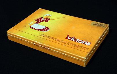 Keywords: Victoria Bonbons Assortis box, pic1.JPG Very old packaging of a Dutch product that is not produced and/or not sold any more own 2014-03-16 16 39 46 Alf van Beem CC-Zero Trademarked Pralines