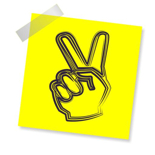 Keywords: victory hand success achievement happiness winner sign icon reminder yellow sticker post note