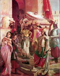 | Keywords: Victory of Meghanada by RRV.jpg Artwork Creator Raja Ravi Varma en Victory of Meghanada Indrajit after his victory over Indra presenting Sachi Devi to Ravana മേഘനാദൻ ഇന്ദ്രവി യത്തിനു ശേഷം സച ദേവിയെ വി രാവണൻ രാവണനു സമർപ്പിക്കുന്നു 1905 Oil on canvas Jaganmohan Palace Mysore Karnataka ശ്ര യാചമ രാ േന്ദ്ര ആർട്ട് ഗാലറി ഗന്മോഹൻ കൊട്ടാരം വി മൈസൂർ കർണ്ണാടക object history credit line accession number http //www kamat com/kalranga/art/raviverma/2560 htm PD-old-100 original upload log All user names refer to en wikipedia 2006-07-21 00 19 ImpuMozhi 300×391×8 40011 bytes <nowiki>Painting by Raja Ravi Varma</nowiki> Depiction of scenes from the Ramayana by Raja Ravi Varma Indrajit Ravana Art of India in the Jaganmohan Palace 1905 paintings by Raja Ravi Varma |