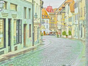 | Keywords: VidGajsek - WAY US838.jpg en wet Upper Square traditional old catholic district of Ljubljana City Capital of Slovenia in Europe own Vid Gajšek 2012 Eleassar <sup> t/p </sup> 10 11 7 December 2012 UTC Upper Square Ljubljana Sett-paved streets in Ljubljana |