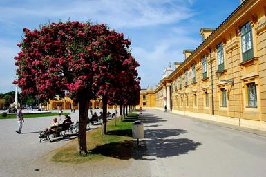 Keywords: vienna schönbrunn blue sky clouds sky blue federwolke bright tourists perspective