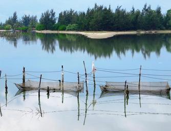 Keywords: viet nam danang lake fishing fisherman netting calm serenity reflections