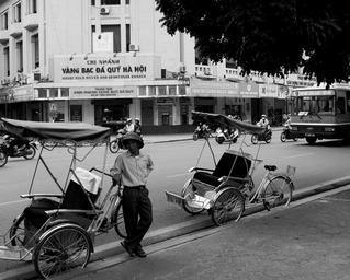Keywords: vietnam hanoi black and white street rickshaw