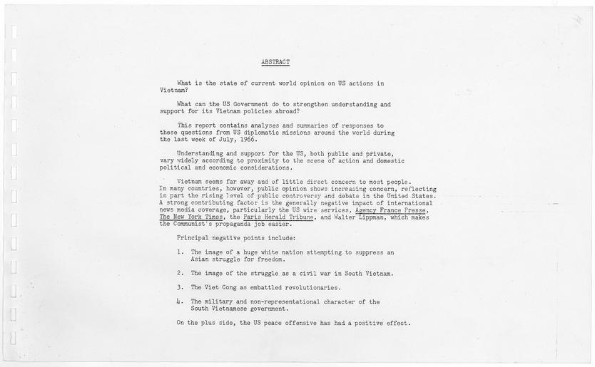 | Keywords: Vietnam and World Opinion, p. 3 of 118 - NARA - 304226.tif Scope and content General notes 304226 Local identifier U S Information Agency Office of Research and Media Reaction ca 1996 - 10/01/1999 Most Recent <br/> U S Information Agency Office of Research 10/31/1973 - 03/27/1978 Predecessor <br/> U S Information Agency Office of Research and Evaluation 11/19/1953 - 04/30/1954 Predecessor <br/> U S Information Agency Office of Research 1982 - 1999 Predecessor National Archives at College Park - Textual Reference Civilian RD-DC-2-CIV National Archives at College Park 8601 Adelphi Road College Park MD 20740-6001 date 1966 Record group Record Group 306 Records of the U S Information Agency 1900 - 2003 Record group ARC 622 Special Reports compiled 1953 - 1997 Series ARC 1098728 File unit File unit ARC Variant control numbers NAIL Control Number NWCTC-306-SREPS-1966S 15 NAIL Control Number NWDT2-306-SREPS-1966S 15 yes Other versions <gallery> File Vietnam and World Opinion p 1 of 118 - NARA - 304226 tif This page as TIFF File Vietnam and World Opinion p 1 of 118 - NARA - 304226 jpg This page as JPG </gallery> Other pages <gallery> File Vietnam and World Opinion p 1 of 118 - NARA - 304226 tif page 1 TIFF File Vietnam and World Opinion p 2 of 118 - NARA - 304226 tif page 2 TIFF File Vietnam and World Opinion p 3 of 118 - NARA - 304226 tif page 3 TIFF File Vietnam and World Opinion p 4 of 118 - NARA - 304226 tif page 4 TIFF File Vietnam and World Opinion p 5 of 118 - NARA - 304226 tif page 5 TIFF File Vietnam and World Opinion p 6 of 118 - NARA - 304226 tif page 6 TIFF File Vietnam and World Opinion p 7 of 118 - NARA - 304226 tif page 7 TIFF File Vietnam and World Opinion p 8 of 118 - NARA - 304226 tif page 8 TIFF File Vietnam and World Opinion p 9 of 118 - NARA - 304226 tif page 9 TIFF File Vietnam and World Opinion p 10 of 118 - NARA - 304226 tif page 10 TIFF File Vietnam and World Opinion p 11 of 118 - NARA - 304226 tif page 11 TIFF File Vietnam and World Opinion p 12 of 118 - NARA - 304226 tif page 12 TIFF File Vietnam and World Opinion p 13 of 118 - NARA - 304226 tif page 13 TIFF File Vietnam and World Opinion p 14 of 118 - NARA - 304226 tif page 14 TIFF File Vietnam and World Opinion p 15 of 118 - NARA - 304226 tif page 15 TIFF File Vietnam and World Opinion p 16 of 118 - NARA - 304226 tif page 16 TIFF File Vietnam and World Opinion p 17 of 118 - NARA - 304226 tif page 17 TIFF File Vietnam and World Opinion p 18 of 118 - NARA - 304226 tif page 18 TIFF File Vietnam and World Opinion p 19 of 118 - NARA - 304226 tif page 19 TIFF File Vietnam and World Opinion p 20 of 118 - NARA - 304226 tif page 20 TIFF File Vietnam and World Opinion p 21 of 118 - NARA - 304226 tif page 21 TIFF File Vietnam and World Opinion p 22 of 118 - NARA - 304226 tif page 22 TIFF File Vietnam and World Opinion p 23 of 118 - NARA - 304226 tif page 23 TIFF File Vietnam and World Opinion p 24 of 118 - NARA - 304226 tif page 24 TIFF File Vietnam and World Opinion p 25 of 118 - NARA - 304226 tif page 25 TIFF File Vietnam and World Opinion p 26 of 118 - NARA - 304226 tif page 26 TIFF File Vietnam and World Opinion p 27 of 118 - NARA - 304226 tif page 27 TIFF File Vietnam and World Opinion p 28 of 118 - NARA - 304226 tif page 28 TIFF File Vietnam and World Opinion p 29 of 118 - NARA - 304226 tif page 29 TIFF File Vietnam and World Opinion p 30 of 118 - NARA - 304226 tif page 30 TIFF File Vietnam and World Opinion p 31 of 118 - NARA - 304226 tif page 31 TIFF File Vietnam and World Opinion p 32 of 118 - NARA - 304226 tif page 32 TIFF File Vietnam and World Opinion p 33 of 118 - NARA - 304226 tif page 33 TIFF File Vietnam and World Opinion p 34 of 118 - NARA - 304226 tif page 34 TIFF File Vietnam and World Opinion p 35 of 118 - NARA - 304226 tif page 35 TIFF File Vietnam and World Opinion p 36 of 118 - NARA - 304226 tif page 36 TIFF File Vietnam and World Opinion p 37 of 118 - NARA - 304226 tif page 37 TIFF File Vietnam and World Opinion p 38 of 118 - NARA - 304226 tif page 38 TIFF File Vietnam and World Opinion p 39 of 118 - NARA - 304226 tif page 39 TIFF File Vietnam and World Opinion p 40 of 118 - NARA - 304226 tif page 40 TIFF File Vietnam and World Opinion p 41 of 118 - NARA - 304226 tif page 41 TIFF File Vietnam and World Opinion p 42 of 118 - NARA - 304226 tif page 42 TIFF File Vietnam and World Opinion p 43 of 118 - NARA - 304226 tif page 43 TIFF File Vietnam and World Opinion p 44 of 118 - NARA - 304226 tif page 44 TIFF File Vietnam and World Opinion p 45 of 118 - NARA - 304226 tif page 45 TIFF File Vietnam and World Opinion p 46 of 118 - NARA - 304226 tif page 46 TIFF File Vietnam and World Opinion p 47 of 118 - NARA - 304226 tif page 47 TIFF File Vietnam and World Opinion p 48 of 118 - NARA - 304226 tif page 48 TIFF File Vietnam and World Opinion p 49 of 118 - NARA - 304226 tif page 49 TIFF File Vietnam and World Opinion p 50 of 118 - NARA - 304226 tif page 50 TIFF File Vietnam and World Opinion p 51 of 118 - NARA - 304226 tif page 51 TIFF File Vietnam and World Opinion p 52 of 118 - NARA - 304226 tif page 52 TIFF File Vietnam and World Opinion p 53 of 118 - NARA - 304226 tif page 53 TIFF File Vietnam and World Opinion p 54 of 118 - NARA - 304226 tif page 54 TIFF File Vietnam and World Opinion p 55 of 118 - NARA - 304226 tif page 55 TIFF File Vietnam and World Opinion p 56 of 118 - NARA - 304226 tif page 56 TIFF File Vietnam and World Opinion p 57 of 118 - NARA - 304226 tif page 57 TIFF File Vietnam and World Opinion p 58 of 118 - NARA - 304226 tif page 58 TIFF File Vietnam and World Opinion p 59 of 118 - NARA - 304226 tif page 59 TIFF File Vietnam and World Opinion p 60 of 118 - NARA - 304226 tif page 60 TIFF File Vietnam and World Opinion p 61 of 118 - NARA - 304226 tif page 61 TIFF File Vietnam and World Opinion p 62 of 118 - NARA - 304226 tif page 62 TIFF File Vietnam and World Opinion p 63 of 118 - NARA - 304226 tif page 63 TIFF File Vietnam and World Opinion p 64 of 118 - NARA - 304226 tif page 64 TIF