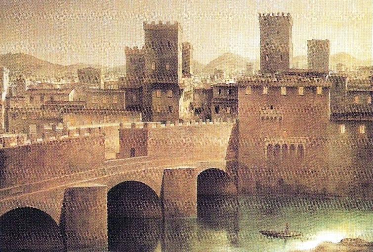 | Keywords: View of Ancient Florence by Fabio Borbottoni 1820-1902 (3).jpg L' antica fortificazione di Ponte Vecchio Since 1996 in Cassa di Risparmio di Firenze Collection century 19 creator Fabio Borbottoni Author died more than 70 years ago - public domain PD-old-100 Fabio Borbottoni Ponte Vecchio in art Arno River in Florence in art |