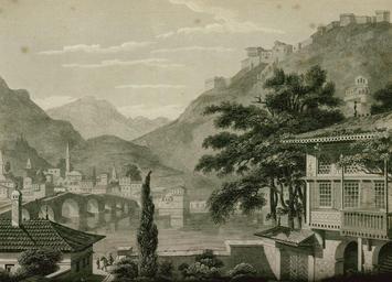 View Original:View of the Castle of Berat and Turkish Cemetery on the banks of the Apsus - Hughes Thomas Smart - 1820.jpg (800x578)