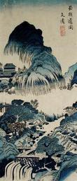 | Keywords: View of the Corduroy Road to Shu (5759418452).jpg en <b>Accession Number </b> 1957 413 <b>Display Artist </b> Bunsei Tanaka <b>Display Title </b> View of the Corduroy Road to Shu <b>Translation s </b> Shoku sando no zu <b>Creation Date </b> 1830-1836 <b>Medium </b> Woodblock <b>Height </b> 14 1/2 in <b>Width </b> 6 1/4 in <b>Display Dimensions </b> 14 1/2 in x 6 1/4 in 36 83 cm x 15 88 cm <b>Credit Line </b> Bequest of Mrs Cora Timken Burnett <b>Label Copy </b> This little-known artist created a Chinese-style landscape print featuring the hazardous road to the Kingdom of Shu which was built out on piles from sheer cliffs The road was constructed during the Qin dynasty 221206 BCE which also was responsible for the Great Wallin order to facilitate the conquest of this region of western China in present-day Sichuan province <b>Collection </b> <a href http //www sdmart org/art/our-collection/asian-art rel nofollow >The San Diego Museum of Art</a> 2011-05-25 11 56 18 https //www flickr com/photos/thesandiegomuseumofartcollection/5759418452/ Flickr en thesandiegomuseumofartcollection PD-old-100 Files from the San Diego Museum of Art to be checked Shu Roads |