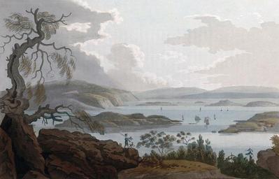 | Keywords: View from Egeberg (JW Edy plate 55).jpg Artwork Creator John William Edy en View from Egeberg No LV VIEW FROM EGEBERG The present view was taken on the same spot as the last which when placed on the right of this comprehends the general appearance of the whole Fiord with its islands as seen from the top of Egeberg a mountain in the immediate vicinity of Christiania Two of the crown islands are continued from the right and the third is on a line with them more to the left The ships sailing up the regular channel between them are pursuing their course round the point into the harbour The passage between the islands when certain winds prevail is attended with many difficulties and requires great skill in pilotage as indeed does every part of the Fiord It has no tides; and great perils are to be apprehended from sunken rocks bad anchorage and sudden gusts of winds issuing from between the mountains and islands If the ships miss a pass between the latter or do not attain their next anchoring place they invariably return before night to that which they left in the morning This necessary precaution at times renders the navigation extremely tedious to the impatient voyager; and the obstacles are such that it is utterly impossible for an enemy to reach Christiania by water; nor can the best and most experienced pilots ever be prevailed on to attempt the passage by night The great promontory on the left Nas Oddin connects with a vast congregation of woody mountains extending down the Fiord to Grisebue Drobak c and on its east side forming the extensive bay of Biorning the entrance to which is seen behind the weatherbeaten tree on the foreground The hills in the extreme distance are in the west of Norway By placing on a table views Nos 56 55 54 49 50 and 53 successively by the side of each other beginning with 56 on the left a tolerably panoramic exhibition may be formed of the situation of Christiania in the midst of its superb environs ; and I presume that the scene will then be allowed very far to excel the much admired lake of Geneva with all its beauties From the heights of Egeberg only the bay harbour and circumjacent country appear in all their glorious splendor The Fiord is decorated with islands and animated with ships and boats ; accessories which Geneva cannot boast and which are here presented at one view in a most interesting and enchanting living picture not inferior to the finest Italian scenery The placid serenity of the water's silvery surface its wild fowl skimming the midway air and the gentle murmurs of the trees overhead incline the imagination to believe that the repose is eternal ; but alas it is transitory and precarious and seasons occur when the awful and tremendous visitations of Bosera and his fatal attendants tear up and lay waste all that is exposed to their fury Then the picture is horrible in the extreme; the very mountains seem in motion and appear to be assembling and again forming in the lake beneath which is agitated like a foaming and boiling cauldron Not a ship boat or bird is in view the trees are bent to the earth their fragments flying in the air; the small water-falls and rills are no more seen on the sides of the mountains being torn from them and dissipated before they can reach the bottom If the hapless ship cannot in time retreat behind a rock she is inevitably wrecked and all on board perish as anchors then become useless The natives well aware of these sudden visitations have wisely and humanely placed on the sides of the perpendicular rocks iron rings to which the mariner confidently moors sheltered by a tower of strength over his mast head although in imminent peril from the large fragments which occasionally fall from above Collapse bottom http //urn nb no/URN NBN no-nb_digibok_2011072910001 Boydell's picturesque scenery of Norway London 1820 Plate no 55 p 293 in scanned copy no-nb_digibok_2011072910001 PD-Art-100 John William Edy Boydell's picturesque scenery of Norway Historical images of Oslofjorden Ekeberg Views of Oslo from Ekeberg |
