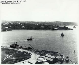 | Keywords: archives state records nsw staterecordsnsw newsouthwales blackandwhite sydney harbour panorama ships dawes point horse vehicle ferry pastoral association wool store black and white View from the southern side of Sydney Harbour looking north towards Kirribilli, Sydney. The foreground shows Dawes Point with the vehicular ferry ramp. At top left is the vehicular ferry KAMILAROI, built 1901, loading at Milsons Point terminal Dated: No date Digital ID: 4481_a026_000474 Rights: www.records.nsw.gov.au/about-us/rights-and-permissions We'd love to hear from you if you use our photos. Many other photos in our collection are available to view and browse on our website using Photo Investigator. View from the southern side of Sydney Harbour looking north towards Kirribilli, Sydney. The foreground shows Dawes Point with the vehicular ferry ramp. At top left is the vehicular ferry KAMILAROI, built 1901, loading at Milsons Point terminal Dated: No date Digital ID: 4481_a026_000474 Rights: www.records.nsw.gov.au/about-us/rights-and-permissions We'd love to hear from you if you use our photos. Many other photos in our collection are available to view and browse on our website using Photo Investigator. |