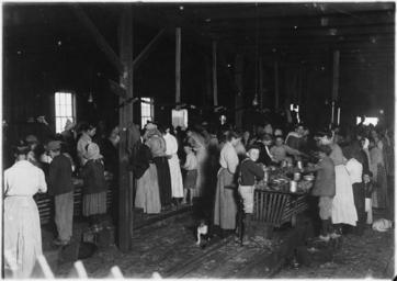 | Keywords: View of the Gorenflo Canning Co. taken at 7 A.M. - NARA - 523308.jpg Scope and content View of the Gorenflo Canning Co taken at 7 A M Many tiny workers here some of whom began to arrive at the factory as early as 5 o clock an hour before they were allowed to work and long before daylight on a damp foggy day The whistle had been blown and they came around merely to hold their places When the catch has been good they begin work early but to-day it was not so good so they were waiting for daylight In this group I ascertained the ages of a few as follows one child of six years one of 7 two of 8 one of 10 and there were many others Biloxi Miss General notes 523308 Local identifier 102-LH-1498 Department of Commerce and Labor Children's Bureau 1912 - 1913 NARA-Author Hine Lewis Wickes 1874-1940 Photographer 1122914 <br /> Still Picture Records Section Special Media Archives Services Division NWCS-S National Archives at College Park 8601 Adelphi Road College Park MD 20740-6001 1911-03-06 Record group Record Group 102 Records of the Children's Bureau 1908 - 2003 Record group ARC 431 National Child Labor Committee Photographs taken by Lewis Hine compiled ca 1912 - ca 1912 documenting the period 1908 - 1912 Series ARC 523064 File unit File unit ARC Variant control numbers NAIL Control Number NWDNS-102-LH-1498 Other versions <gallery> File View_of_the_Gorenflo_Canning_Co _taken_at_7_A M _-_NARA_-_523308 tif tif </gallery> NARA-cooperation PD-USGov Factory workers Biloxi Mississippi 1911 in Mississippi Child labor in the United States |