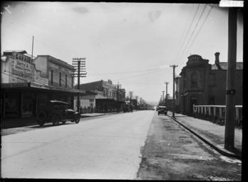 | Keywords: blackandwhite monochrome road outdoor photo border architecture black and white View looking down Great South Road, the main street in Otahuhu. Cars are parked on both sides of the street. On the righthand side is the Star Hotel. Across the road are Smith's Garage and the Gaiety Theatre. Photograph taken by William A Price ca 1928. Quantity: 1 b&w original negative(s). Physical Description: Dry glass plate negative 4.5 x 6.5 inches View looking along Great South Road, Otahuhu, Auckland. Price, William Archer, 1866-1948 :Collection of post card negatives. Ref: 1/2-001192-G. Alexander Turnbull Library, Wellington, New Zealand. natlib.govt.nz/records/22916058 View looking down Great South Road, the main street in Otahuhu. Cars are parked on both sides of the street. On the righthand side is the Star Hotel. Across the road are Smith's Garage and the Gaiety Theatre. Photograph taken by William A Price ca 1928. Quantity: 1 b&w original negative(s). Physical Description: Dry glass plate negative 4.5 x 6.5 inches View looking along Great South Road, Otahuhu, Auckland. Price, William Archer, 1866-1948 :Collection of post card negatives. Ref: 1/2-001192-G. Alexander Turnbull Library, Wellington, New Zealand. natlib.govt.nz/records/22916058 |