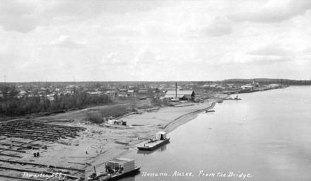 | Keywords: View of Nenana, ca 1912 (THWAITES 324).jpeg check categories 27 October 2016 3 Photograph Creator John E Thwaites Caption on image Nenana Alaska from the bridge PH Coll 247 765<br/>Nenana is located in Interior Alaska 55 road miles southwest of Fairbanks on the George Parks Highway Nenana is located at mile 412 of the Alaska Railroad on the south bank of the Tanana River just east of the mouth of the Nenana River It lies 304 road miles northeast of Anchorage Nenana is in the westernmost portion of Tanana Athabascan Indian territory It was first known as Tortella an interpretation of the Indian word Toghotthele which means mountain that parallels the river Early explorers such as Allen Harper and Bates first entered the Tanana Valley in 1875 and 1885 However the Tanana people were accustomed to contact with Europeans due to trading journeys to the Village of Tanana where Russians bartered Western goods for furs The discovery of gold in Fairbanks in 1902 brought intense activity to the region A trading post/roadhouse was constructed by Jim Duke in 1903 to supply river travelers and trade with Indians St Mark's Episcopal mission and school was built upriver in 1905 Native children from other communities such as Minto attended school in Nenana A post office opened in 1908 By 1909 there were about 12 000 residents in the Fairbanks area most drawn by gold mining activities In 1915 construction of the Alaska Railroad doubled Nenana's population The Nenana Ice Classic - a popular competition to guess the date and time of the Tanana River ice break-up each spring - began in 1917 among surveyors for the Alaska Railroad The community incorporated as a city in 1921 The Railroad Depot was completed in 1923 when President Warren Harding drove the golden spike at the north end of the 700-foot steel bridge over the Tanana River Nenana now had a transportation link to Fairbanks and Seward According to local records 5 000 residents lived in Nenana during this time however completion of the railroad was followed by an economic slump The population in 1930 was recorded at 291 In 1961 Clear Air Force Station was constructed 21 miles southwest and many civilian contractors commuted from Nenana A road was constructed south to Clear but north vehicles were ferried across the Tanana River In 1967 the community was devastated by one of the largest floods ever recorded in the Tanana Valley Subjects LCTGM Rivers--Alaska--Nenana Subjects LCSH Nenana Alaska ; Cities and towns--Alaska--Nenana; Tanana River Alaska ; Barges--Alaska--Nenana depicted place Nenana Alaska ca 1912 Institution University of Washington UWASH-THWAITES-source accession number thwaites 324 PD-old-auto-1923 1940 Information field Order Number THW338 Images from the John E Thwaites Photographs of Alaska Collection to check Nenana Alaska Tanana River Barges |