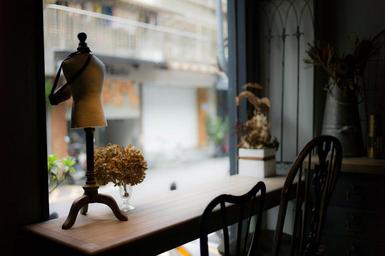 Keywords: view outside window table chairs furniture interior decor vintage room