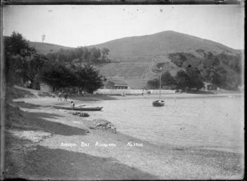| Keywords: blackandwhite monochrome outdoor photo border black and white View looking along the beach at Pipitewai Bay. A large wooden dwelling can be seen close to the foreshore (possibly the Awaawaroa Guesthouse, and/or the Gordon family homestead). People can be seen walking along the beach and sitting on the beach in front of the white picket fence which separates the house from the beach. A yacht is anchored close to the water's edge and a man is sitting in a row boat close to the shore. Photographed by William Archer Price in early 1900s. Inscriptions: Inscribed - Photographer's title on negative -bottom centre: Awaroa Bay. Auckland. No 3500 . Quantity: 1 b&w original negative(s). Physical Description: Dry plate glass negative 4.5 x 6.5 inches View of Pipitewai Bay in Awaawaroa Bay, Waiheke Island. Price, William Archer, 1866-1948 :Collection of post card negatives. Ref: 1/2-000947-G. Alexander Turnbull Library, Wellington, New Zealand. natlib.govt.nz/records/22546006 View looking along the beach at Pipitewai Bay. A large wooden dwelling can be seen close to the foreshore (possibly the Awaawaroa Guesthouse, and/or the Gordon family homestead). People can be seen walking along the beach and sitting on the beach in front of the white picket fence which separates the house from the beach. A yacht is anchored close to the water's edge and a man is sitting in a row boat close to the shore. Photographed by William Archer Price in early 1900s. Inscriptions: Inscribed - Photographer's title on negative -bottom centre: Awaroa Bay. Auckland. No 3500 . Quantity: 1 b&w original negative(s). Physical Description: Dry plate glass negative 4.5 x 6.5 inches View of Pipitewai Bay in Awaawaroa Bay, Waiheke Island. Price, William Archer, 1866-1948 :Collection of post card negatives. Ref: 1/2-000947-G. Alexander Turnbull Library, Wellington, New Zealand. natlib.govt.nz/records/22546006 |