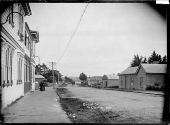 | Keywords: blackandwhite monochrome road outdoor photo border architecture black and white View of Queen Street, Northcote, taken standing outside the Northcote Tavern looking towards the sea in the distance. Houses and wooden buildings can be seen on both sides of the street. A woman is walking towards the camera on the footpath in front of the tavern. A horse-drawn bus can be seen in the distance. Photographed by William Archer Price about 1910 Inscriptions: Inscribed - Photographer's title on negative -bottom centre: Queen St, Northcote, 2902. William Archer Price lived and practised in Queen Street, Northcote, 1909-1910. Source: New Zealand Post Office directories. Quantity: 1 b&w original negative(s). Physical Description: Dry plate glass negative 4.5 x 6.5 inches View of Queen Street, Northcote, Auckland. Price, William Archer, 1866-1948 :Collection of post card negatives. Ref: 1/2-001700-G. Alexander Turnbull Library, Wellington, New Zealand. natlib.govt.nz/records/22839234 View of Queen Street, Northcote, taken standing outside the Northcote Tavern looking towards the sea in the distance. Houses and wooden buildings can be seen on both sides of the street. A woman is walking towards the camera on the footpath in front of the tavern. A horse-drawn bus can be seen in the distance. Photographed by William Archer Price about 1910 Inscriptions: Inscribed - Photographer's title on negative -bottom centre: Queen St, Northcote, 2902. William Archer Price lived and practised in Queen Street, Northcote, 1909-1910. Source: New Zealand Post Office directories. Quantity: 1 b&w original negative(s). Physical Description: Dry plate glass negative 4.5 x 6.5 inches View of Queen Street, Northcote, Auckland. Price, William Archer, 1866-1948 :Collection of post card negatives. Ref: 1/2-001700-G. Alexander Turnbull Library, Wellington, New Zealand. natlib.govt.nz/records/22839234 |