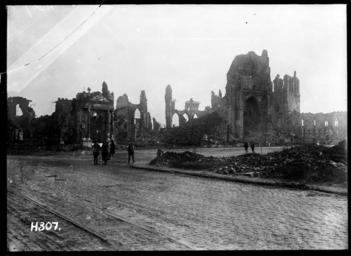 Keywords: the great war thegreatwar great war greatwar world war one worldwarone world war i worldwari wwi first world war firstworldwar ypres blackandwhite monochrome outdoor photo border skyline black and white Soldiers walk among the ruins of bombed buildings in Ypres, Belgium, 1917. Photograph taken by Henry Armytage Sanders. Inscriptions: Inscribed - Photographer's title on negative -bottom left: H307. Quantity: 1 b&w original negative(s). Physical Description: Dry plate glass negative 4.75 x 6.5 inches View of ruins in Ypres, Belgium. Royal New Zealand Returned and Services' Association :New Zealand official negatives, World War 1914-1918. Ref: 1/2-012950-G. Alexander Turnbull Library, Wellington, New Zealand. natlib.govt.nz/records/22789648 Soldiers walk among the ruins of bombed buildings in Ypres, Belgium, 1917. Photograph taken by Henry Armytage Sanders. Inscriptions: Inscribed - Photographer's title on negative -bottom left: H307. Quantity: 1 b&w original negative(s). Physical Description: Dry plate glass negative 4.75 x 6.5 inches View of ruins in Ypres, Belgium. Royal New Zealand Returned and Services' Association :New Zealand official negatives, World War 1914-1918. Ref: 1/2-012950-G. Alexander Turnbull Library, Wellington, New Zealand. natlib.govt.nz/records/22789648