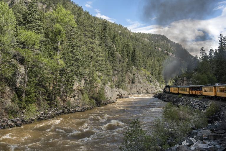 | Keywords: View of the rushing Animas River from the Durango & Silverton Narrow Gauge Railroad (D&SNG) train as it chugs (at 13 miles an hour) through the San Juan Forest in northern La Plata County, LCCN2015632953.tif 1 photograph digital tiff file color Notes Purchase; Carol M Highsmith Photography Inc ; 2015; DLC/PP-2015 068 ; Forms part of Gates Frontiers Fund Colorado Collection within the Carol M Highsmith Archive ; Credit line Gates Frontiers Fund Colorado Collection within the Carol M Highsmith Archive Library of Congress Prints and Photographs Division ; Title date and keywords based on information provided by the photographer ; The D SNG operates 45 2 miles of track between Durango and Silverton in southwest Colorado The route was originally opened in 1882 by the Denver Rio Grande Railway to transport silver and gold ore mined from the San Juan Mountains The line has run continuously since 1881 and some rolling stock dates to then It is now strictly a tourist and heritage line hauling passengers and is one of the few places in the United States that has seen continuous use of steam locomotives In March 1981 the Denver Rio Grande Western sold the line and the D SNG was formed Trains operate from Durango just 26 miles into the mountains in winter months and the full 45 miles to Silverton during warmer months 2015 Creator Carol M Highsmith Library of Congress Catalog http //lccn loc gov/2015632953 Image download https //cdn loc gov/master/pnp/highsm/32900/32938a tif Original url http //hdl loc gov/loc pnp/highsm 32938 No known restrictions on publication LOC-image highsm 32938 PD-Highsmith Images uploaded by Fæ Gates Frontiers Fund Colorado Collection within the Carol M Highsmith Archive Durango and Silverton Narrow Gauge Railroad Animas River Gates Frontiers Fund Colorado Collection within the Carol M Highsmith Archive Library of Congress Prints and Photographs Division Photographs by Carol M Highsmith |