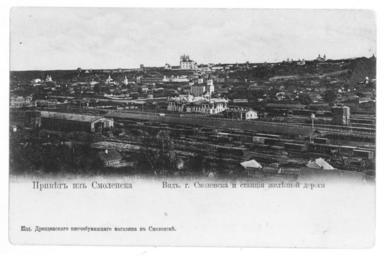 | Keywords: View of Smolensk and the railway station.jpg en View of the city of Smolensk and the railway station ru Вид на го од Смоленск и железнодо ожную станцию О игинальная отк ытка Изд Д езденского писчебумажного магазина before 1917 года PD-RusEmpire 20th-century postcards of Russia Postcards of Smolensk |