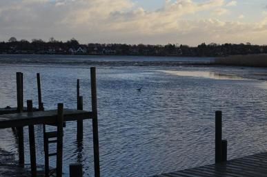 Keywords: view winter sea evening pier wood lake water dusk