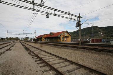 Keywords: 59 58N 10 00E Vikersund Station is a railway station located at the village of Vikersund in Modum, Norway. Opened 1866. attribution: Trond Strandsberg