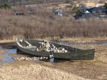 Keywords: Vikingeskib Vestamager.JPG Strandet vikingeskib Vestamager ved København own 2011-03 Orf3us Cc-zero Land art in Denmark Alfio Bonanno Amager Fælled