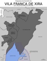 | Keywords: Vila Franca de Xira freguesias 2013.svg pt Freguesias do concelho de Vila Franca de Xira Portugal Fontes Diário da República Reorganização administrativa do território das freguesias Lei n º 11-A/2013 de 28 de janeiro Direcção-Geral do Território DGT Carta Administrativa Oficial de Portugal CAOP versão 2013 Continente http //www dgterritorio pt/ficheiros/cadastro/caop/caop_download/caop_2013_0/caop2013cont_zip_2 en Civil parishes in the municipality of Vila Franca de Xira Portugal Sources Diário da República Administrative reorganization of the civil parishes' territory Law n 11-A/2013 from 28th January Direcção-Geral do Território Official Administrative Chart of Portugal CAOP version 2013 Mainland http //www dgterritorio pt/ficheiros/cadastro/caop/caop_download/caop_2013_0/caop2013cont_zip_2 2015-01-05 own Gazilion other versions cc-zero Uploaded with UploadWizard Vila Franca de Xira SVG maps of freguesias in Portugal |