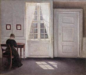 | Keywords: Vilhelm Hammershøi - Interior from Strandgade with Sunlight on the Floor.jpg Vilhelm Hammershøi - A Room in the Artist's Home in Strandgade Copenhagen with the Artist's Wife - Google Art Project jpg en Vilhelm Hammershøi 1864 - 1916 Interior from Strandgade with Sunlight on the Floor 1901 Oil on canvas 46 5 x 52 cm National Gallery of Denmark National Gallery of Denmark Vilhelm Hammershøi 1864 - 1916 1901 Vilhelm Hammershøi Danish paintings in Statens Museum for Kunst People in rooms in art PD-Art |
