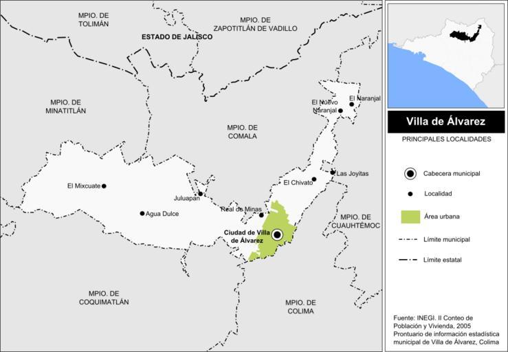 Keywords: Villa de Alvarez localidades.svg Mapa de las principales localidades del municipio de Villa de Alvarez en el estado de Colima México self-made Inkscape 2010-11-21 Battroid SVG maps of Colima Villa de Álvarez