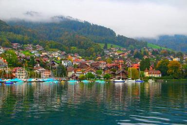 Keywords: village lake thun switzerland blue lake calm cool easy life colorful