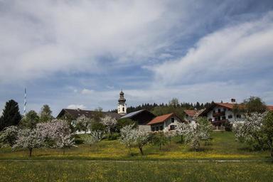 Keywords: village spring baroque church bavaria sky blue white berbling