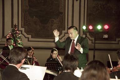 | Keywords: people La ex sala del teatro Cervantes de Punta Arenas fue el lugar escogido para presentar el repertorio de Villancicos que prepararon los músicos de la Orquesta de Cuerdas del Conservatorio de Música de la Universidad de Magallanes junto al Coro Cantares de España, en el contexto de las celebraciones navideñas, bajo la dirección del maestro Ricardo Colima. La ex sala del teatro Cervantes de Punta Arenas fue el lugar escogido para presentar el repertorio de Villancicos que prepararon los músicos de la Orquesta de Cuerdas del Conservatorio de Música de la Universidad de Magallanes junto al Coro Cantares de España, en el contexto de las celebraciones navideñas, bajo la dirección del maestro Ricardo Colima. |