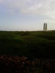 Keywords: Vimy ridge memorial from the nearby carpark.jpg en you can see the mounds of grass which are uncleared battlefield and are danger areas own Dhirun4 2009-11-12 Canadian National Vimy Memorial